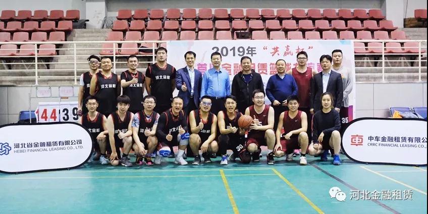 ▲河北金租董事長徐敏俊(后排右五)、監(jiān)事長肖剛(后排右六)、副總裁李永德(后排右七)、工會(huì)主席石拴江(后排右四)等與籃球隊(duì)合影。