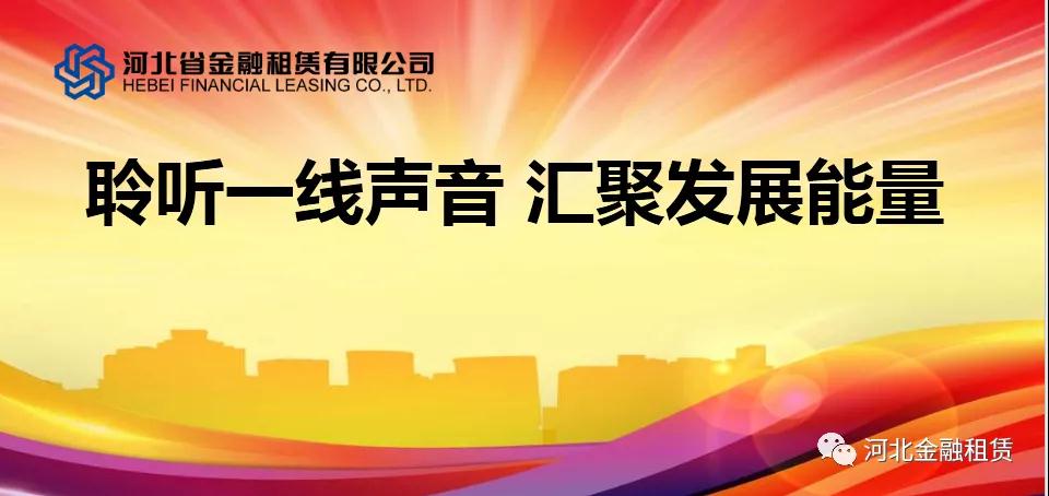 日前,河北省金融租賃有限公司(以下簡(jiǎn)稱“河北金租”或“公司”)在武漢舉行員工座談會(huì),公司董事長(zhǎng)徐敏俊、副總裁李永德等與醫(yī)療健康、工程裝備等業(yè)務(wù)團(tuán)隊(duì)負(fù)責(zé)人和一線業(yè)務(wù)經(jīng)理共同座談,在持續(xù)三個(gè)多小時(shí)的時(shí)間里,業(yè)務(wù)經(jīng)理們踴躍發(fā)聲,實(shí)事求是提建議,獻(xiàn)計(jì)獻(xiàn)策謀發(fā)展,互動(dòng)交流解疑惑,在面對(duì)面的互動(dòng)中搭建了心與心交流的橋梁。